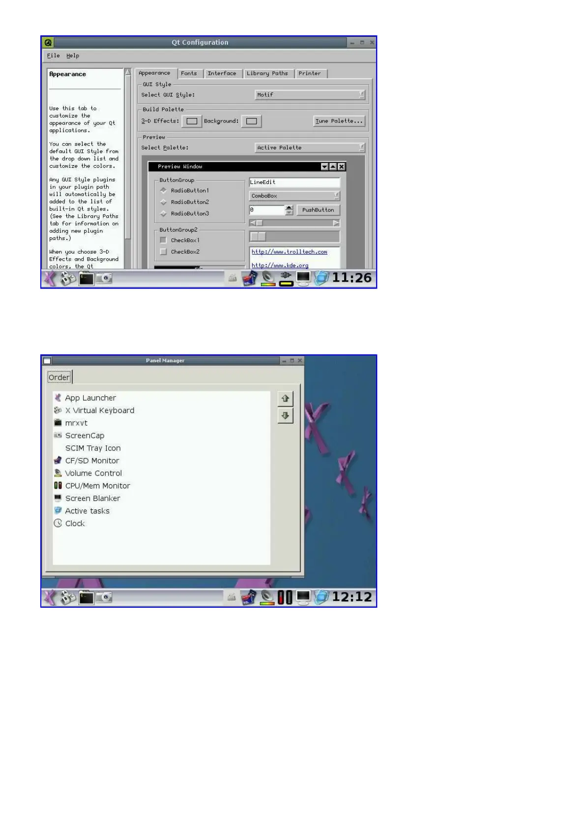Most applications in pdaXrom are GTK based, but there are also a few QT applications.
