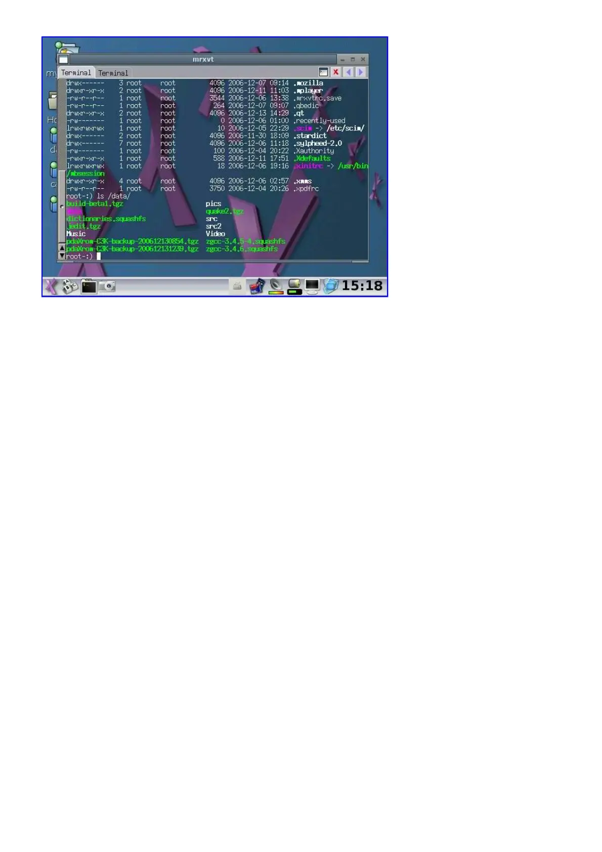 aterm and multi-aterm, as well as rxvt are also available as alternative terminals and installed on