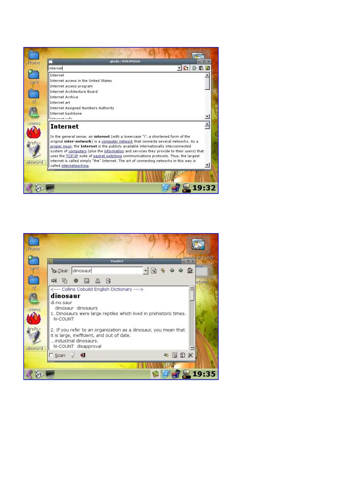 Another popular dictionary package for pdaXrom is stardict which also runs on Windows. There are