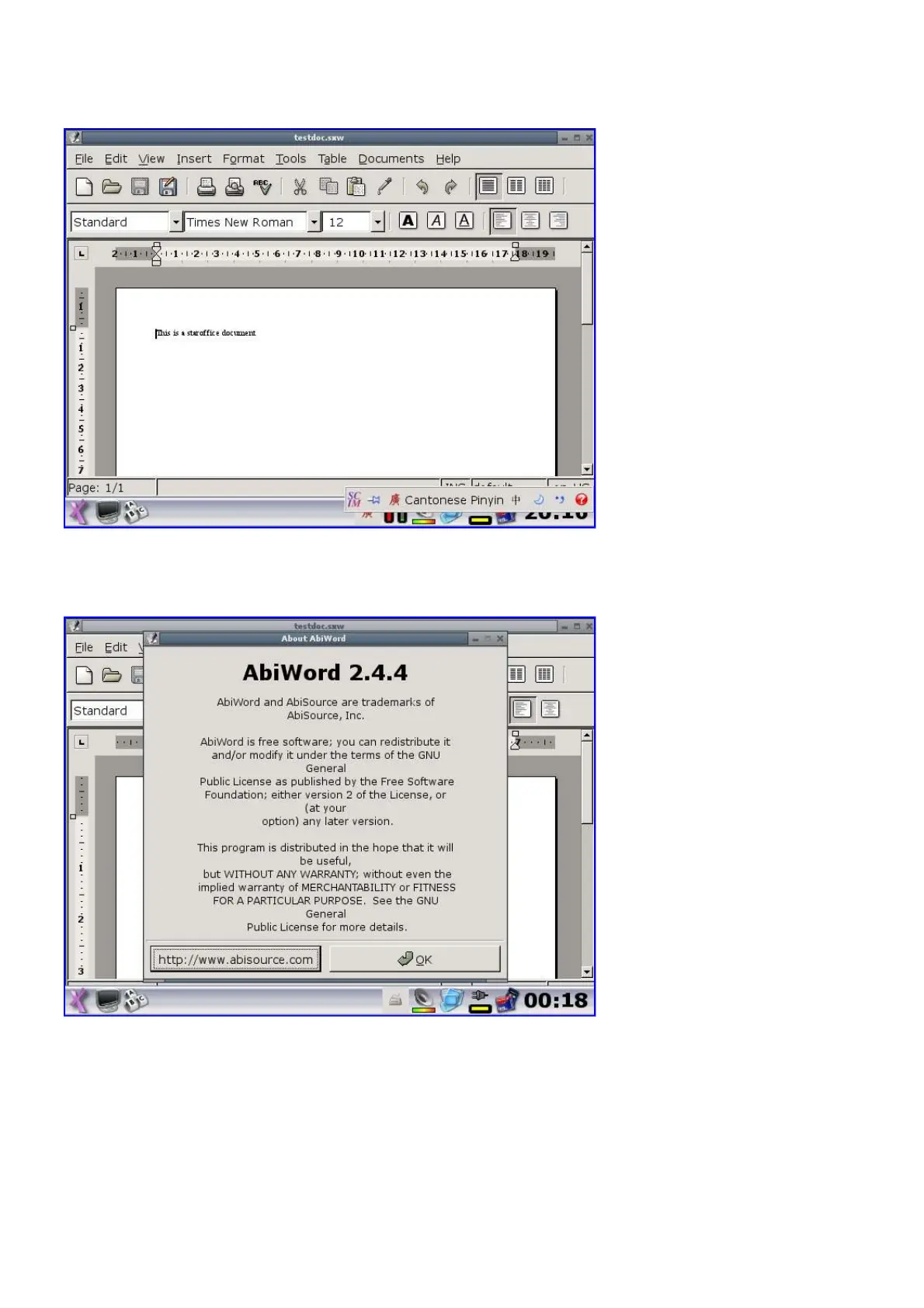 I have compiled Abiword 2.4.4 and fixed all the window sizes so now every window in Abiword is