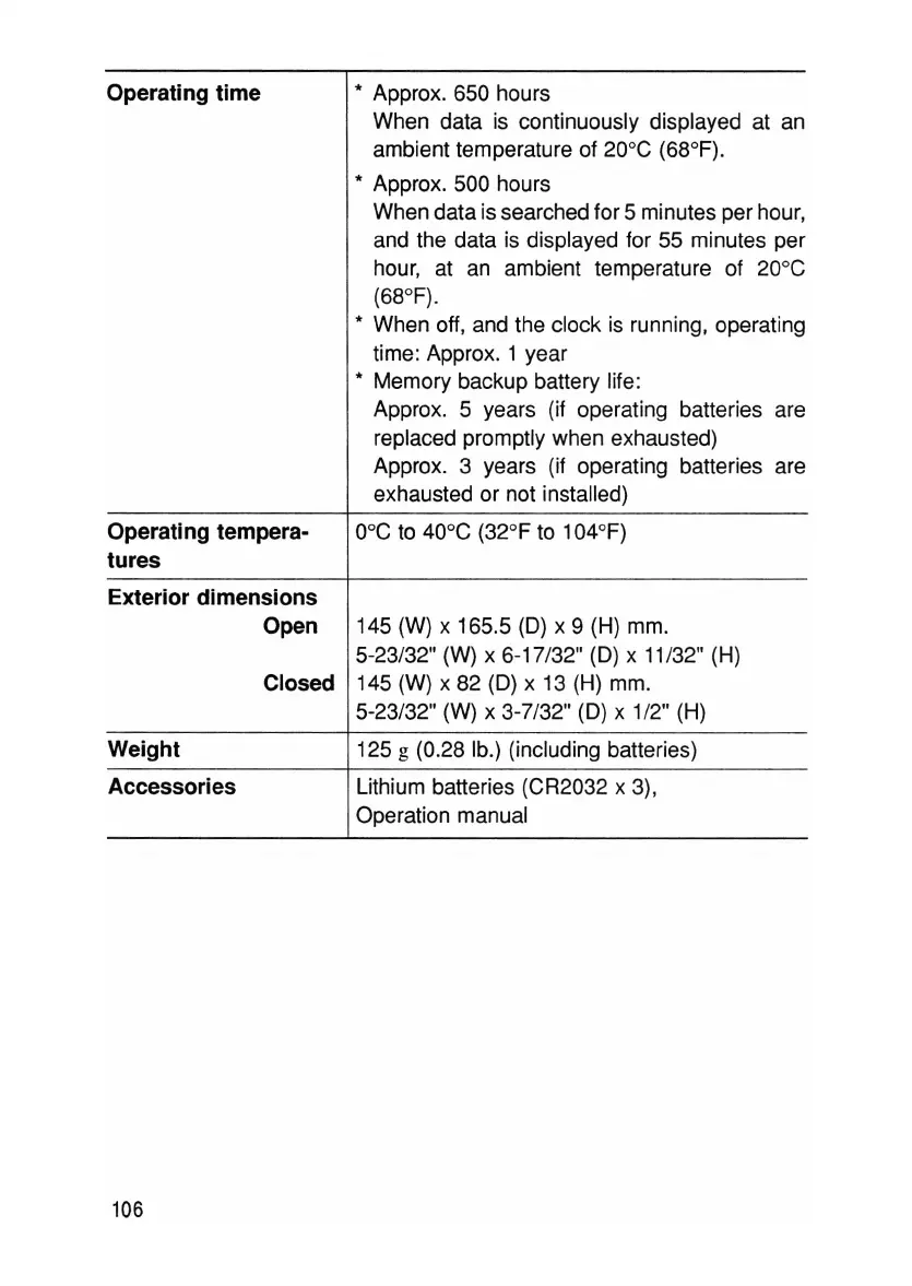 * Memory backup battery life: