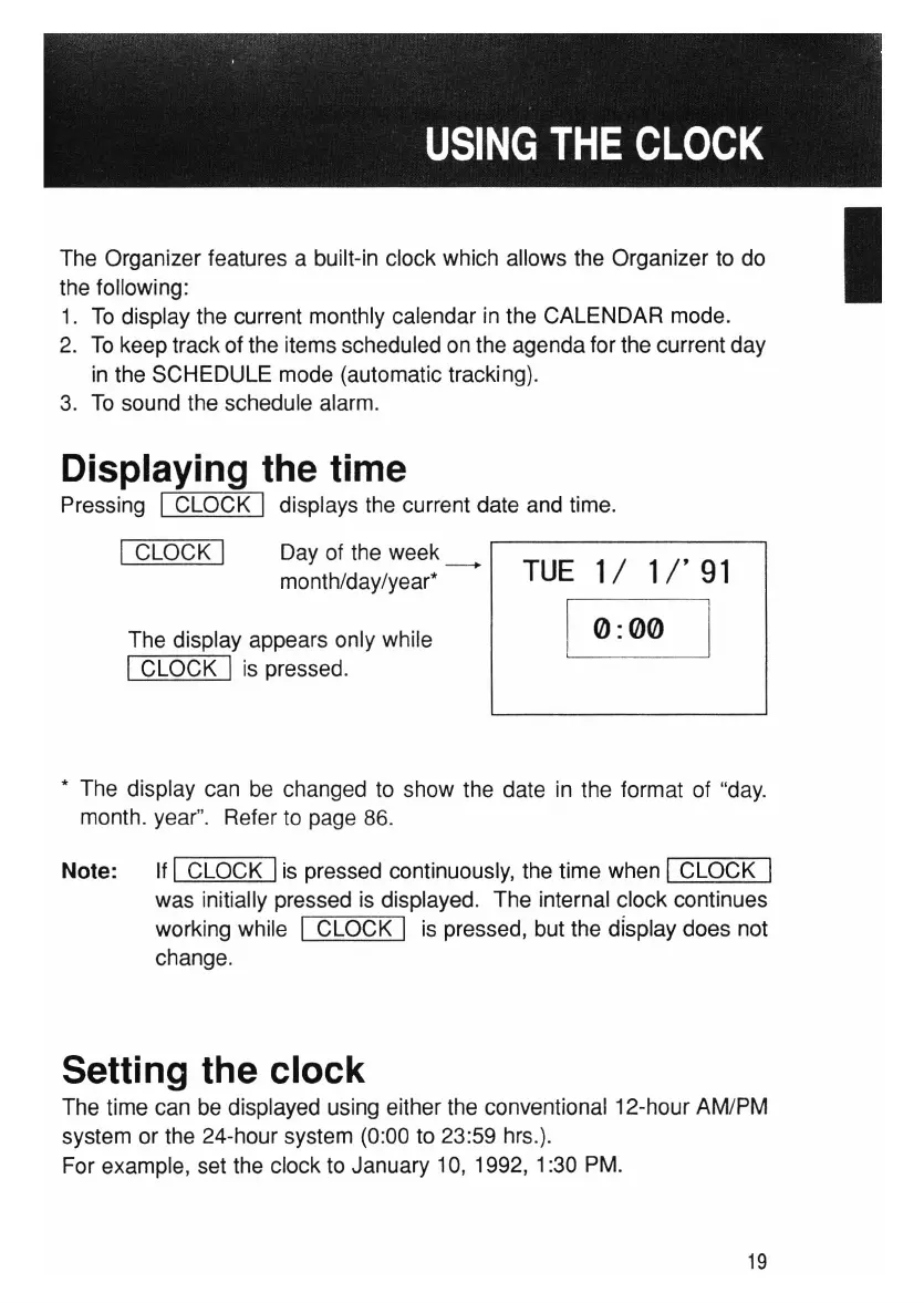 For example, set the clock to January 10, 1992, 1:30 PM.