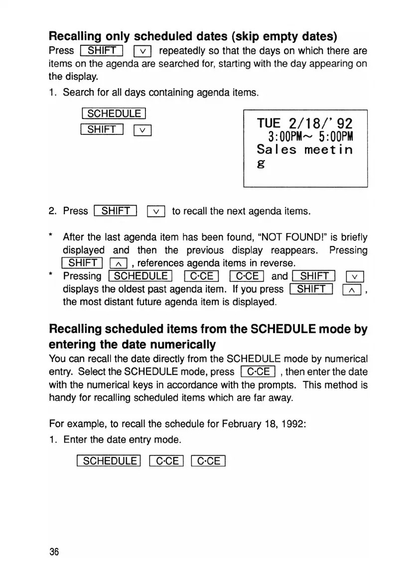 For example, to recall the schedule for February 18, 1992: