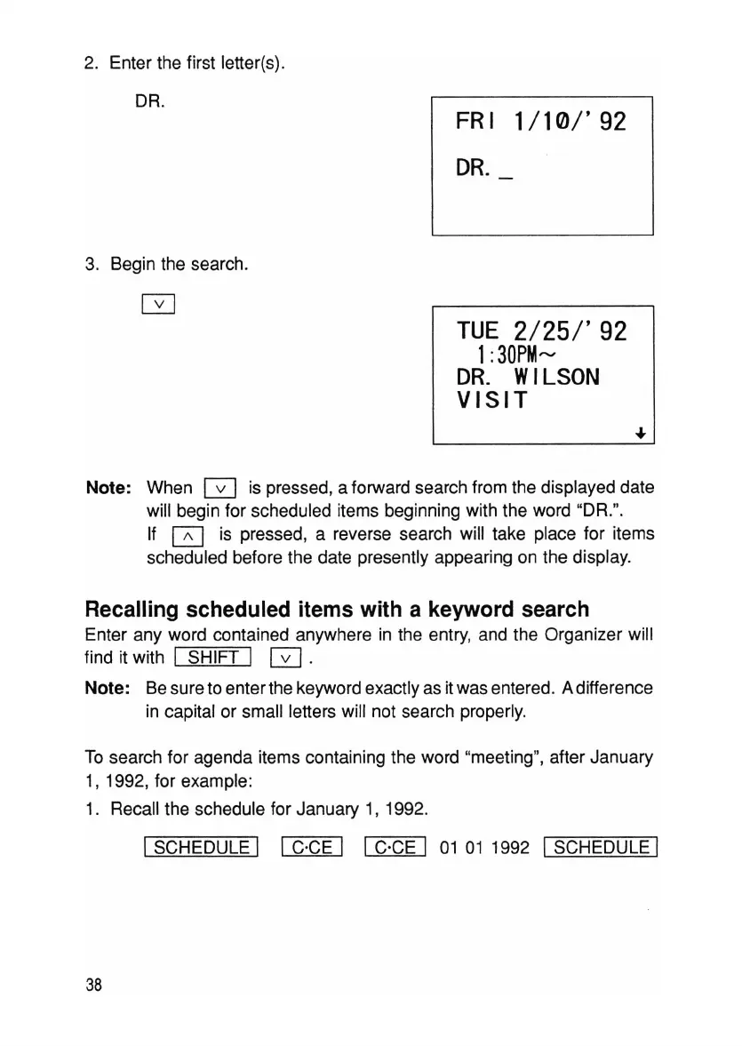 Note: When G is pressed, a forward search from the displayed date