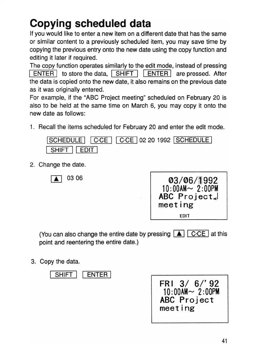 copying the previous entry onto the new date using the copy function and