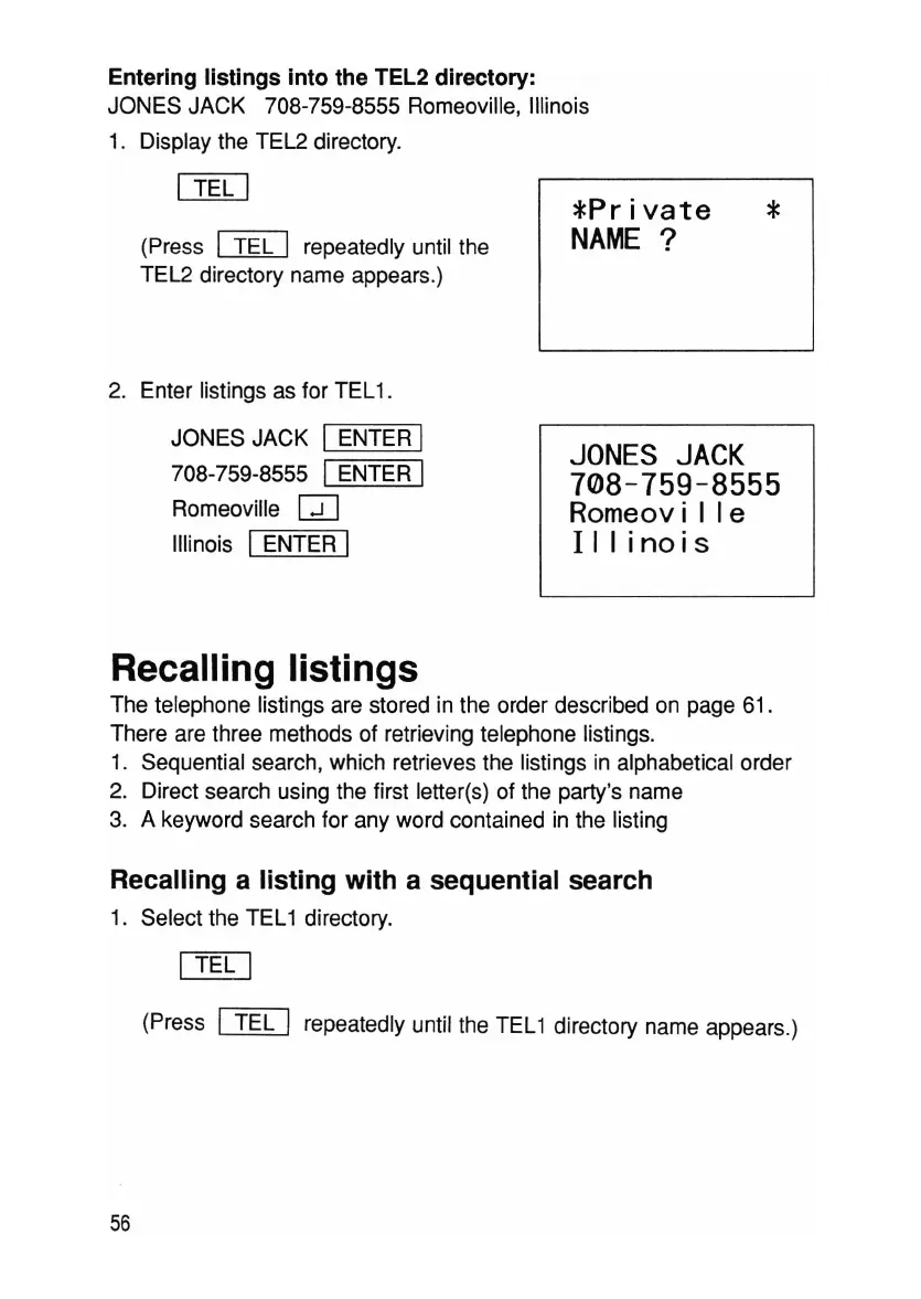 The telephone listings are stored in the order described on page 61.