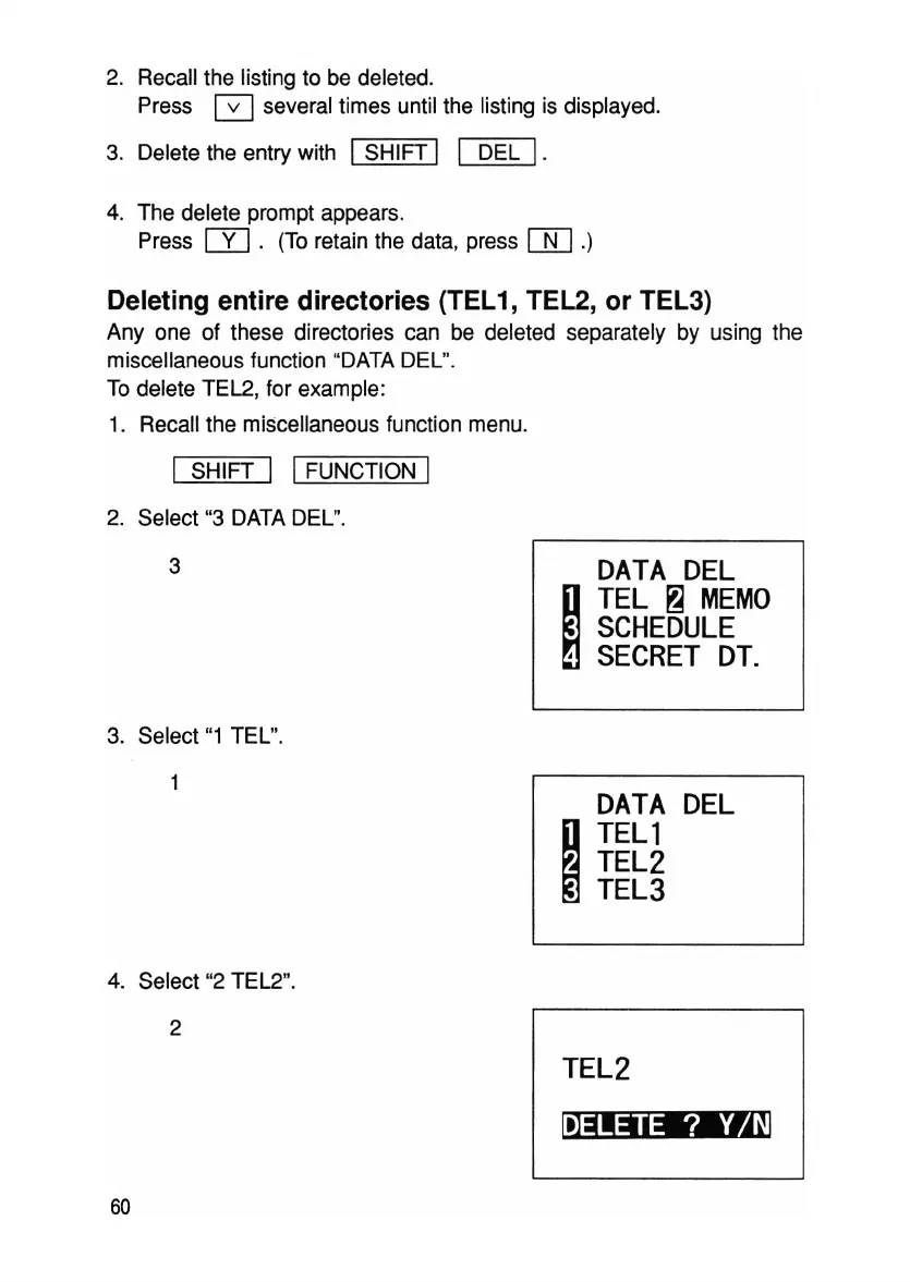 Deleting entire directories (TEL1, TEL2, or TEL3)