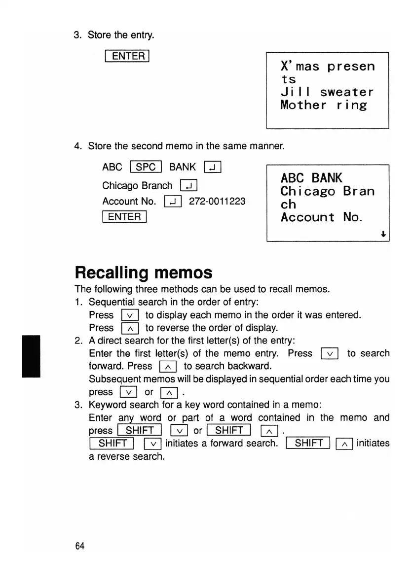 Enter the first letter(s) of the memo entry. Press