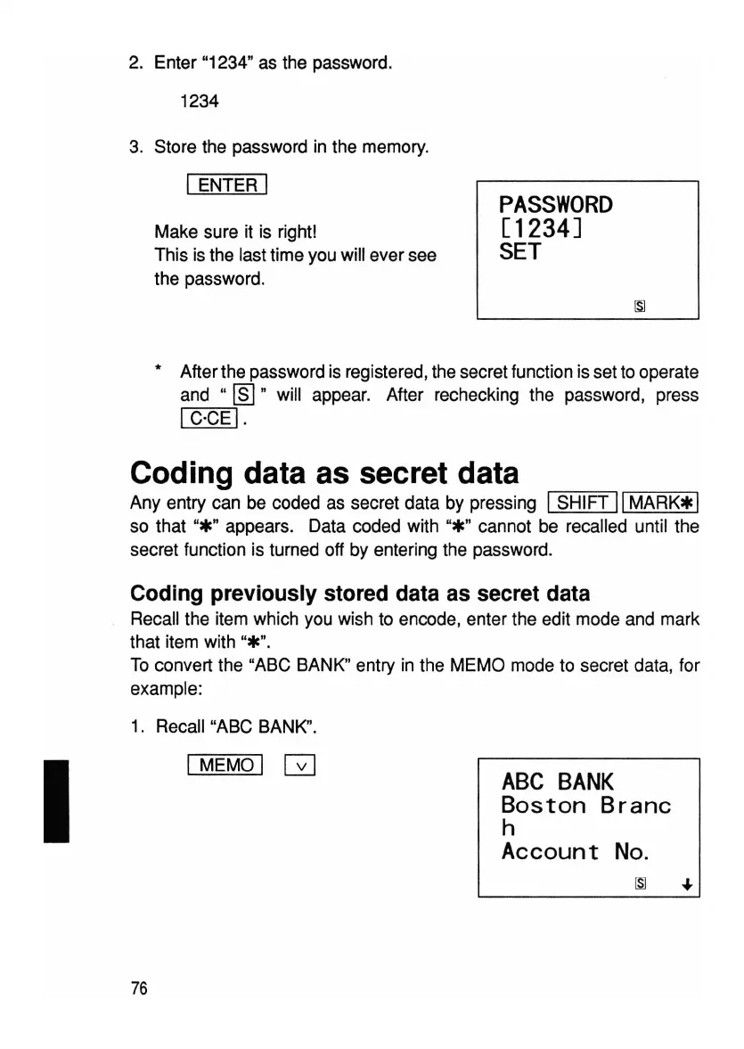 Any entry can be coded as secret data by pressing I SHIFT