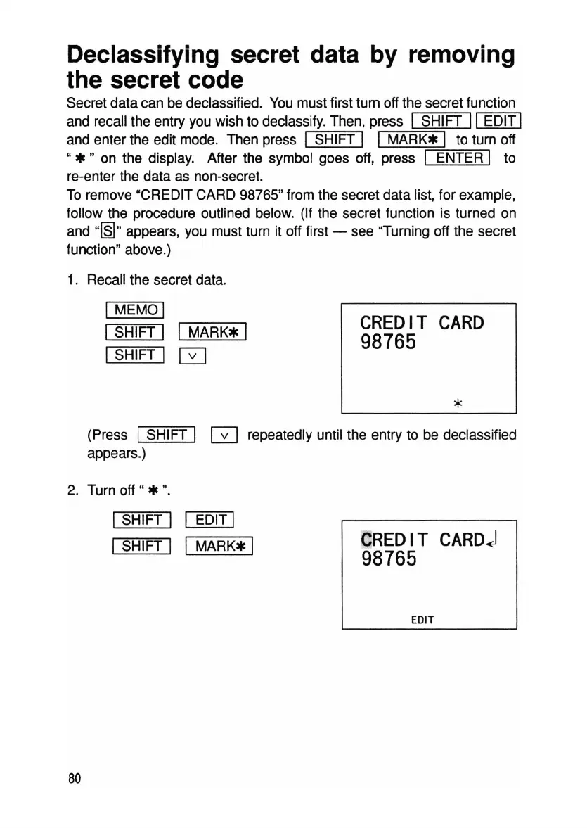 (Press 1SHIFT I 0 repeatedly until the entry to be declassified