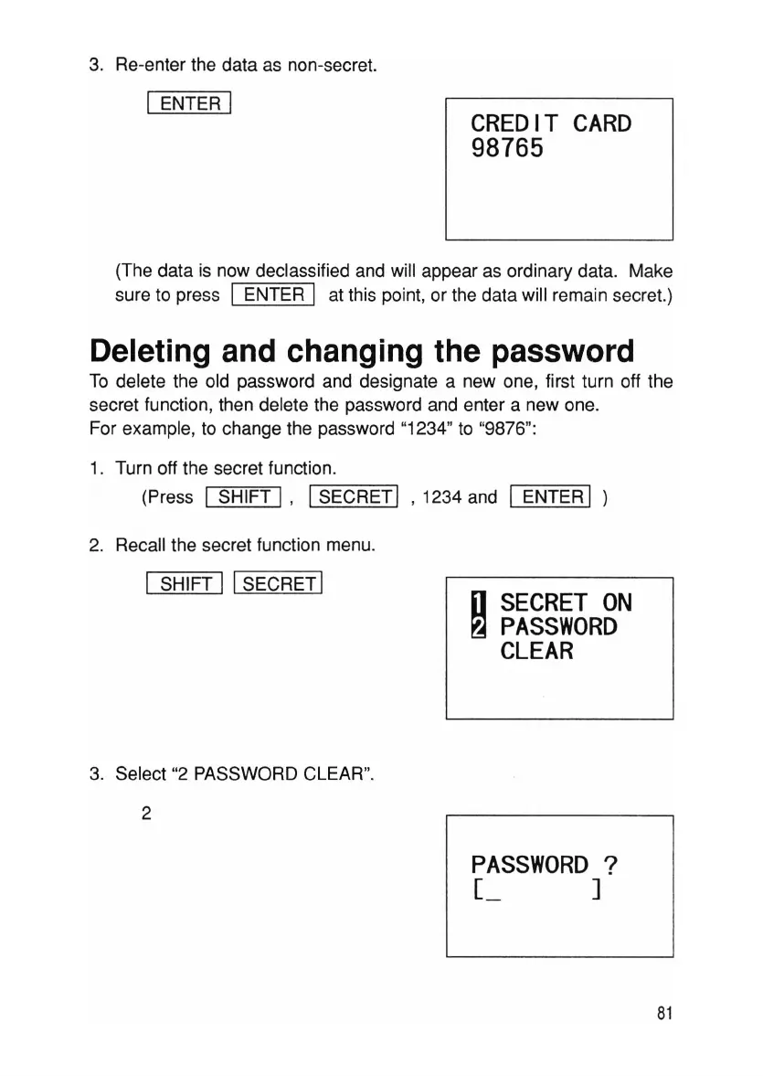 sure to press I ENTER I at this point, or the data will remain secret.)