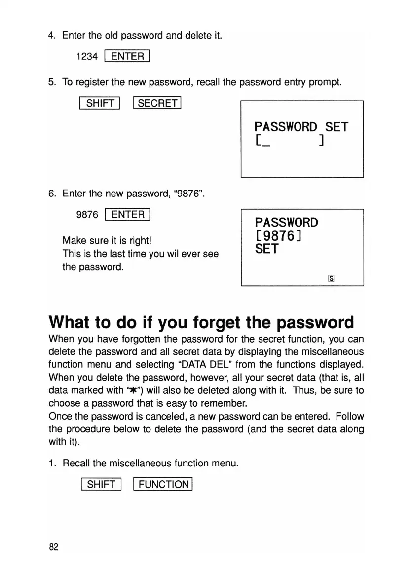 When you have forgotten the password for the secret function, you can
