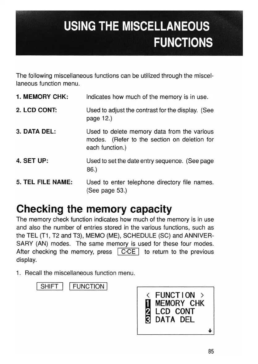 1. Recall the miscellaneous function menu.