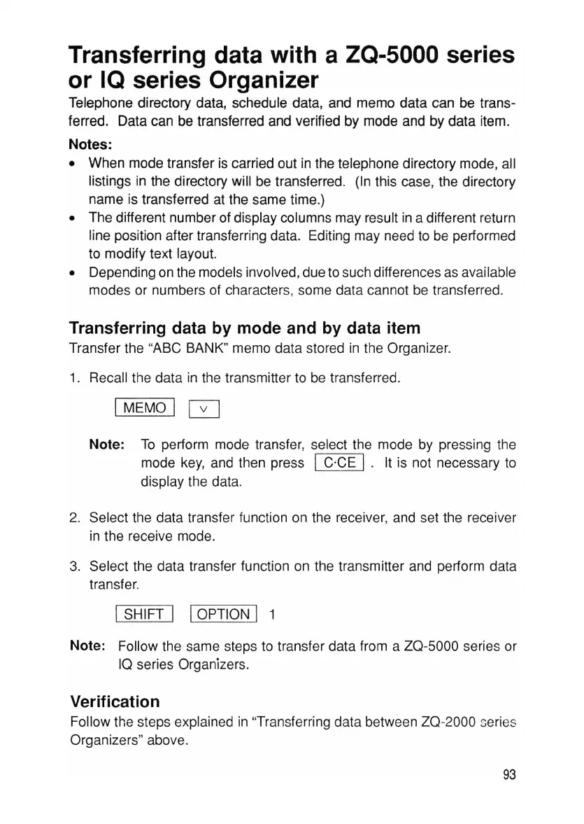 ferred. Data can be transferred and verified by mode and by data item.