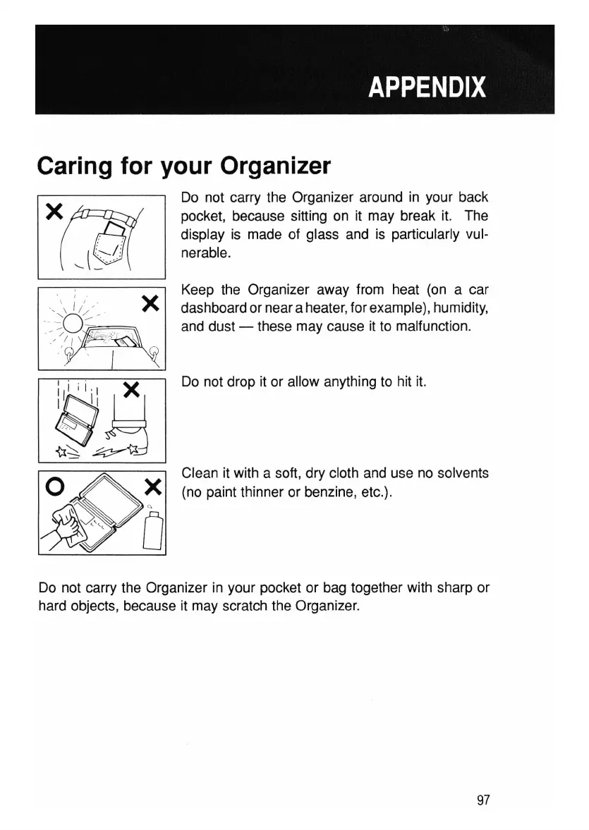 Do not carry the Organizer in your pocket or bag together with sharp or