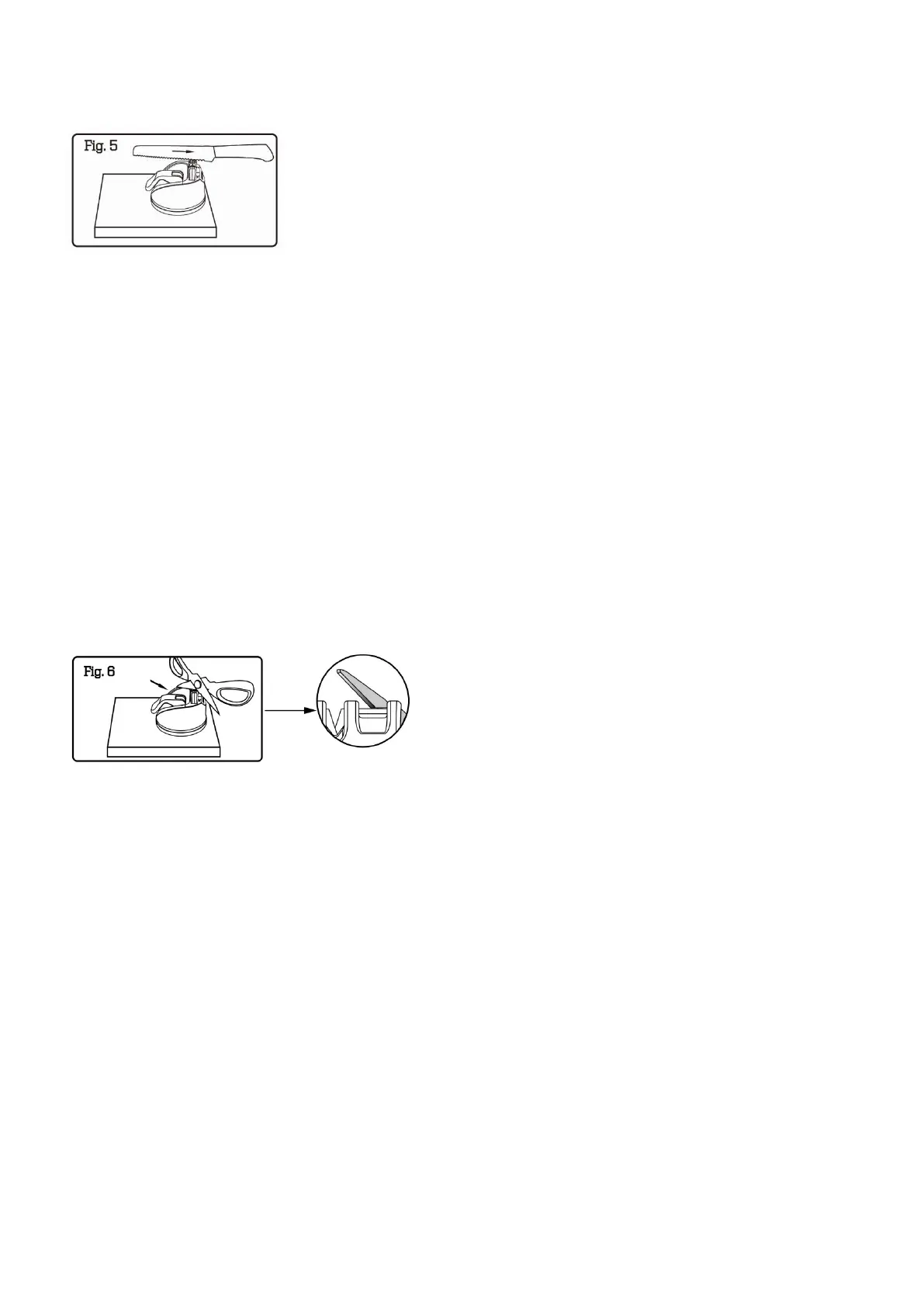 sharpener following the preset angle on the scissors. (See Fig. 6) Repeat this process several times until you