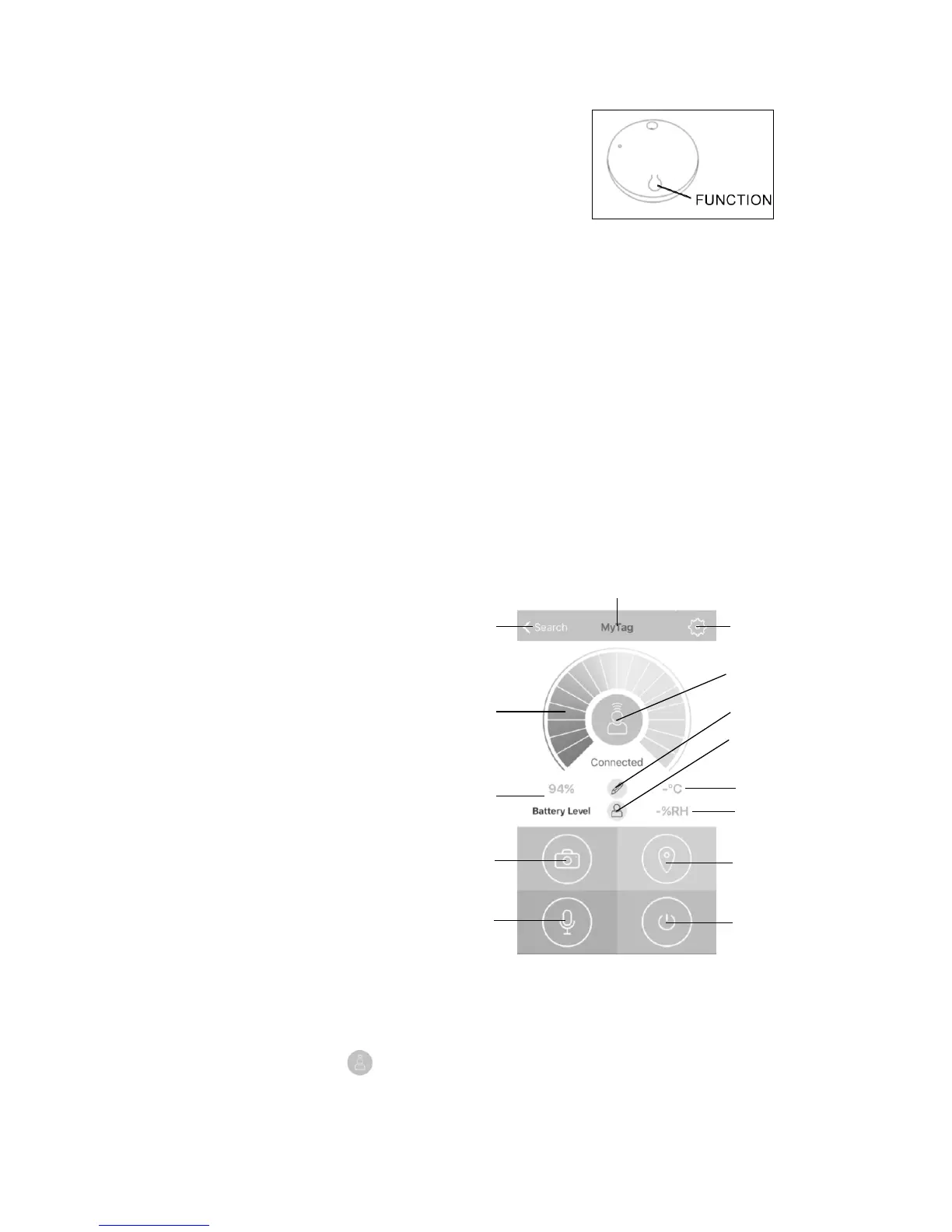 (To stop the alarm, press the function button on the Lost Item Locator or tap the