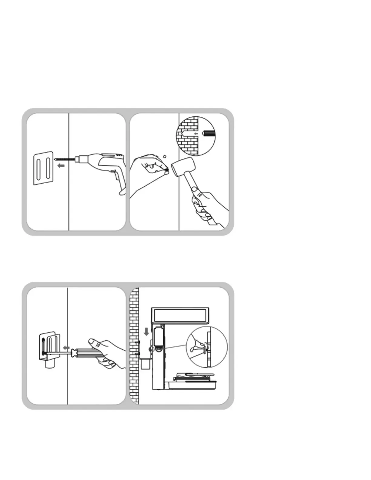 installation. Use a drill to drill 4 holes as indicated, then insert the provided green plastic wall anchor