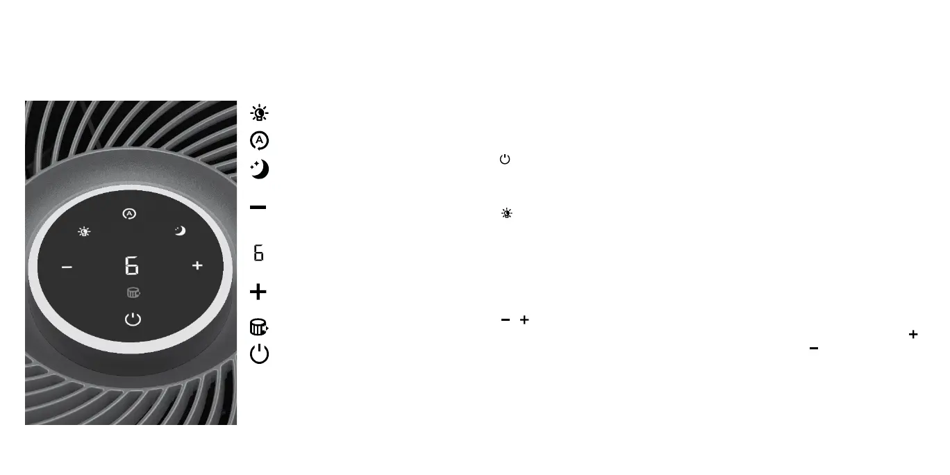 Presione el botón de encendido para encender o apagar Purify 9. El producto