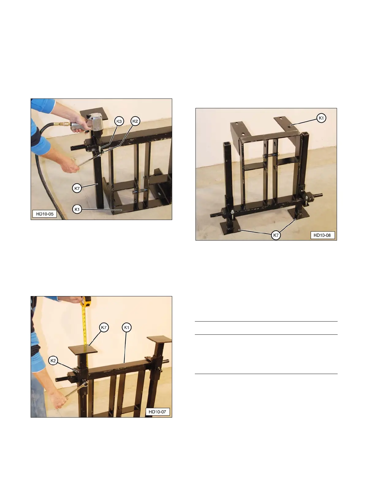 Tighten two leg bracket bolts (K3) to secure