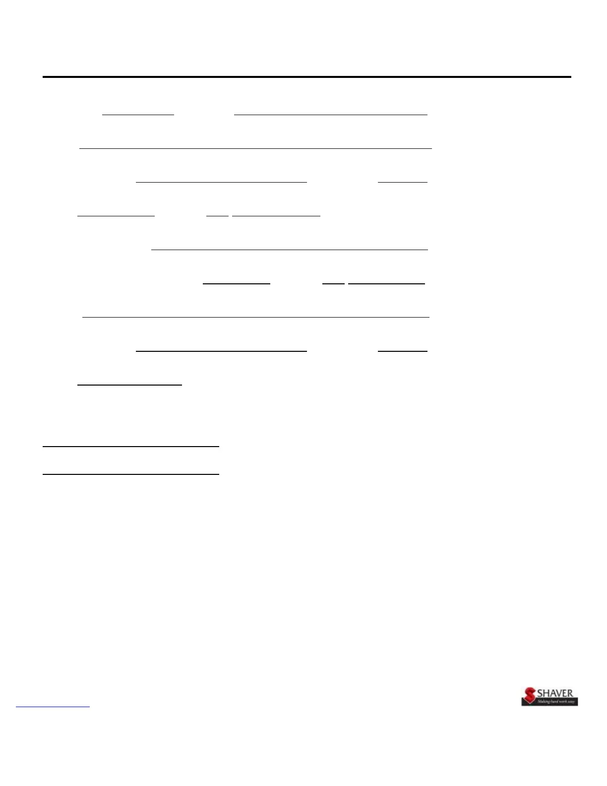 This form must be completed and returned to Shaver within 30 days from receipt of delivery or warranty may become