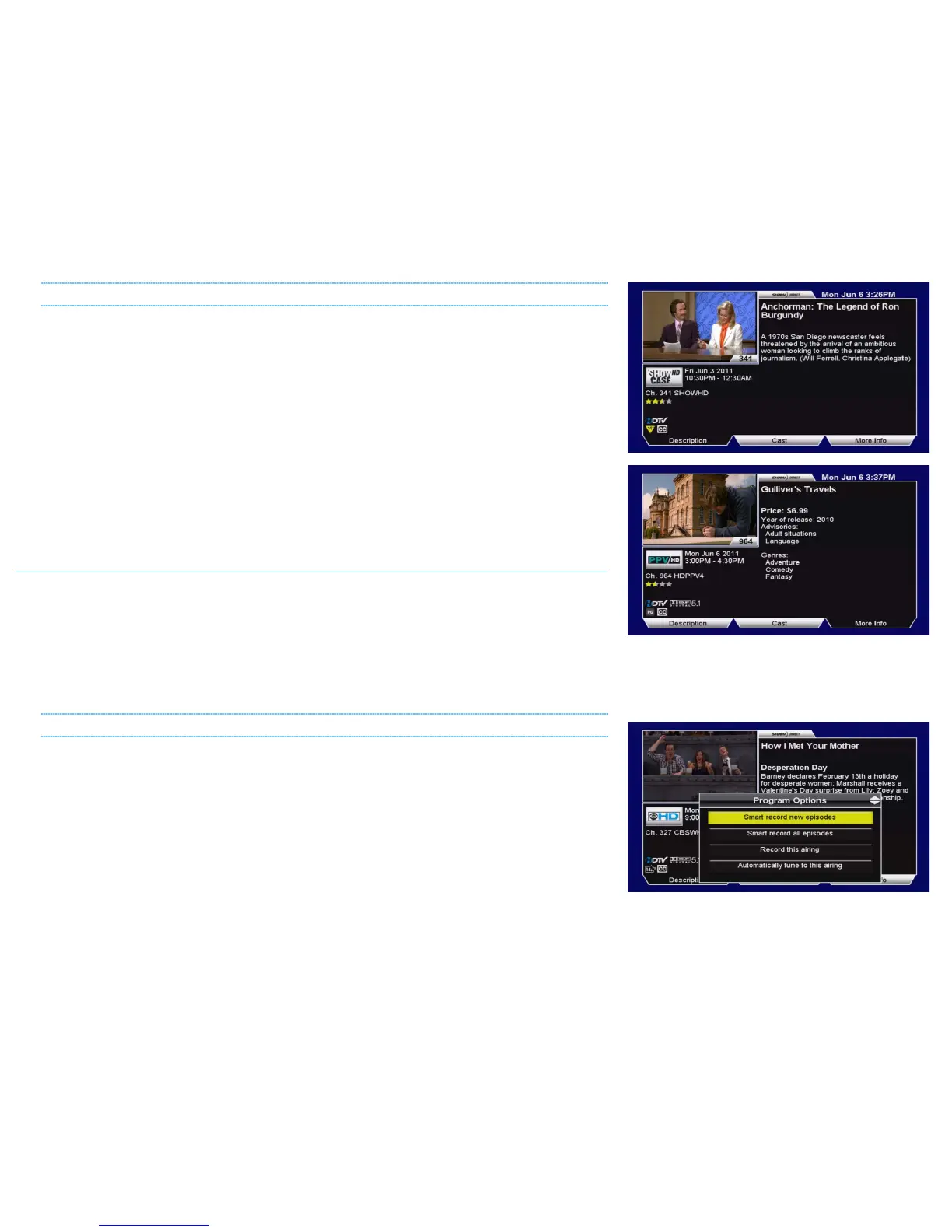 • SMART RECORD NEW EPISODES (HDPVR) or SET A REMINDER FOR NEW EPISODES: Sets a Smart