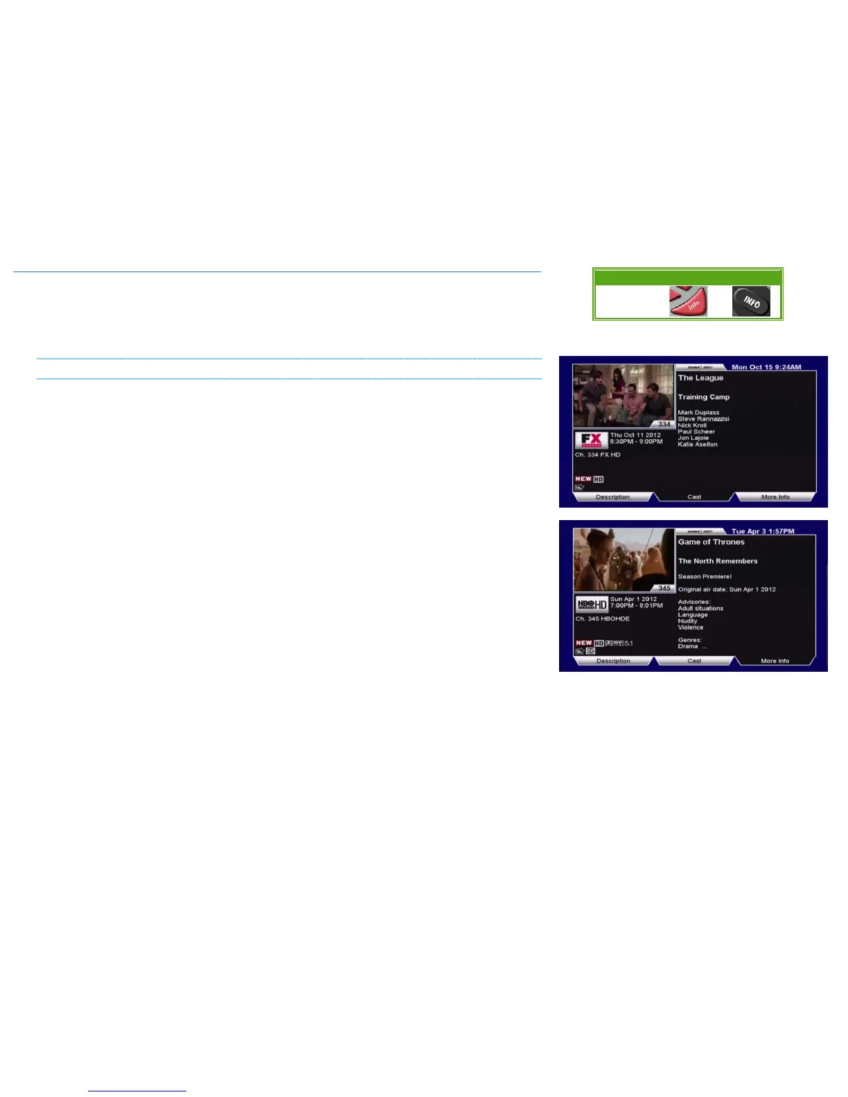 Expanded Information for most programs is available by pressing the INFO button on the remote