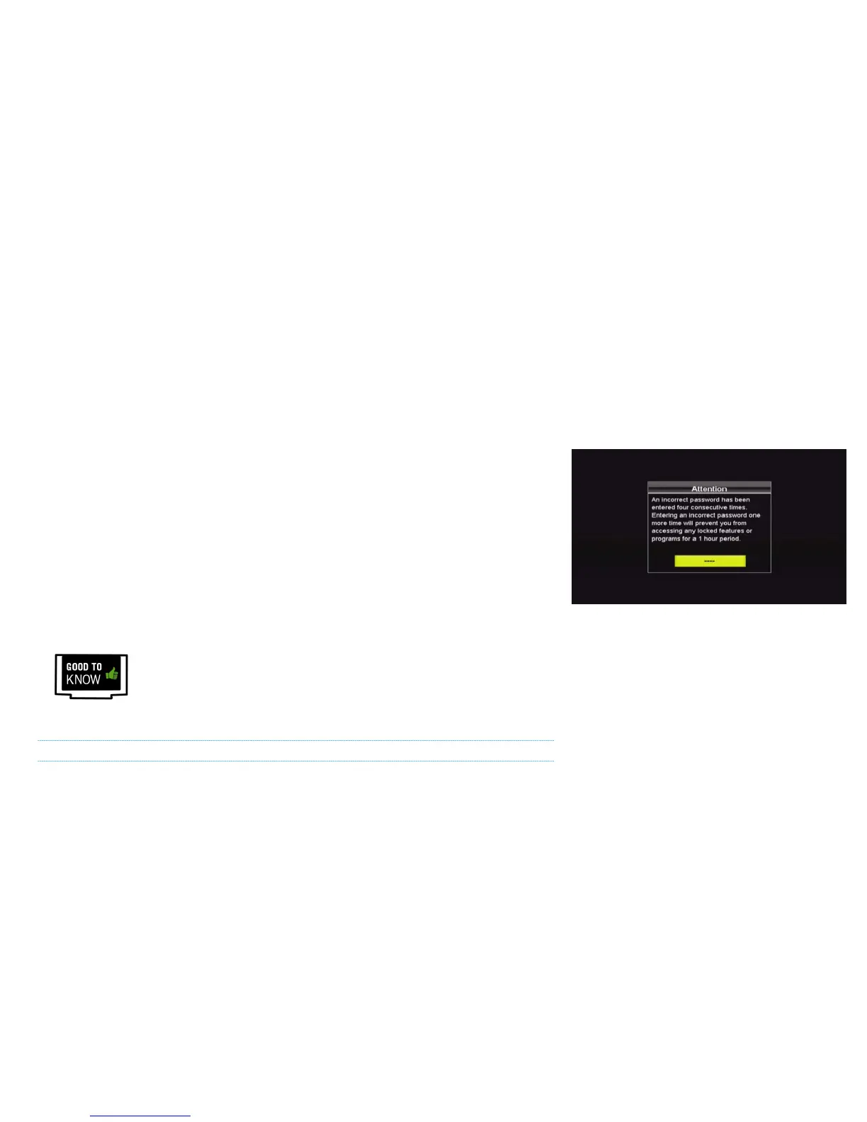 The following Parental Control features provide further security against unauthorized viewing: