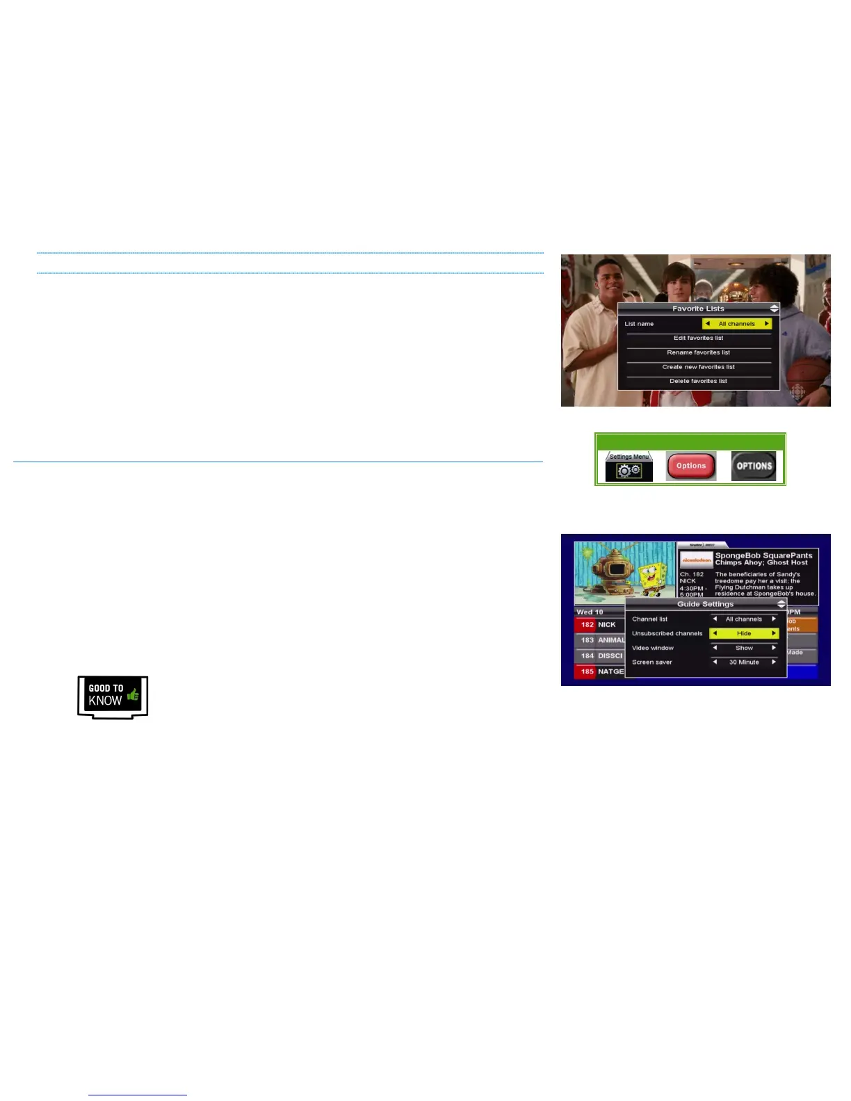 From within the Guide, you can also press OPTIONS on the remote control and use the LEFT or