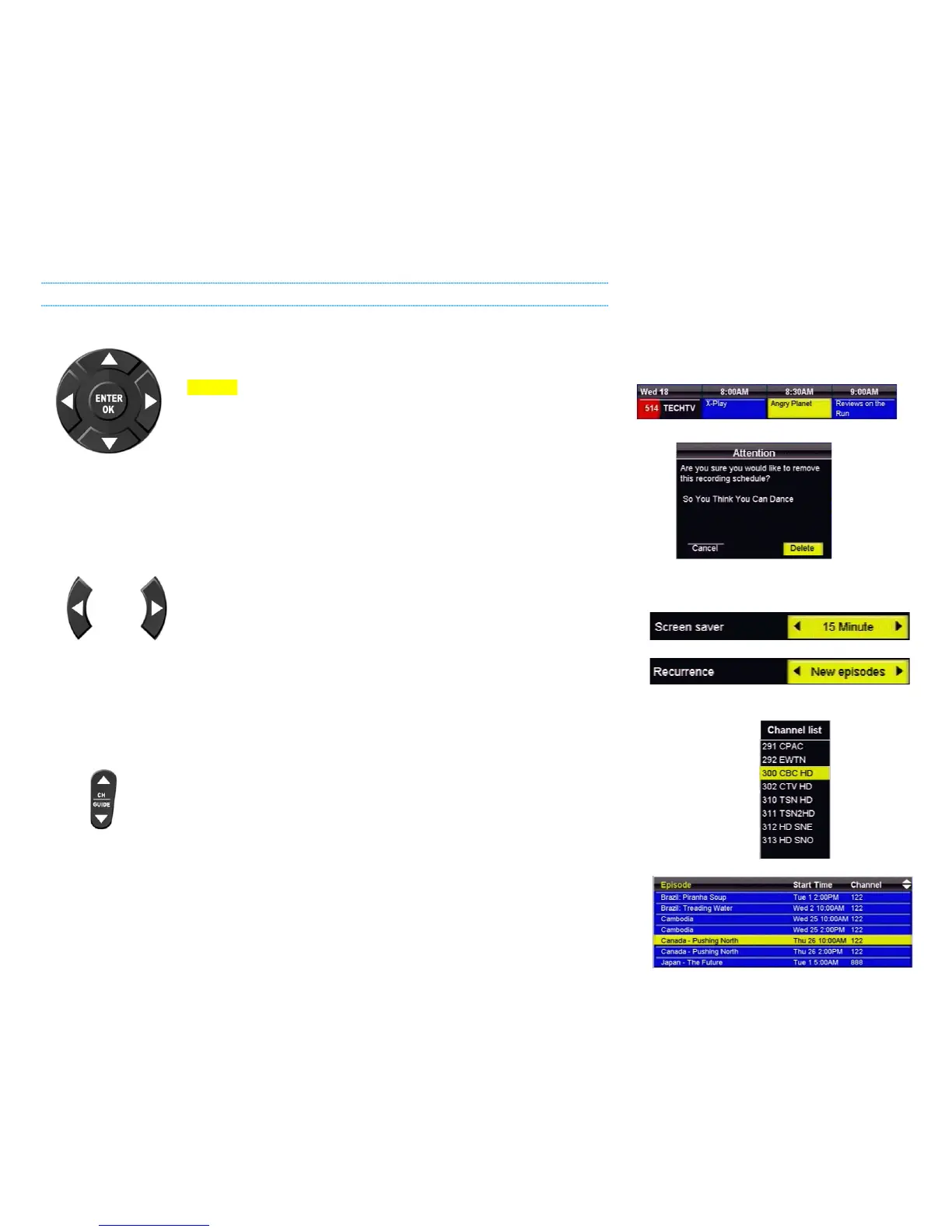 The following keys will allow you to navigate through the menus on your Shaw Direct HD receiver: