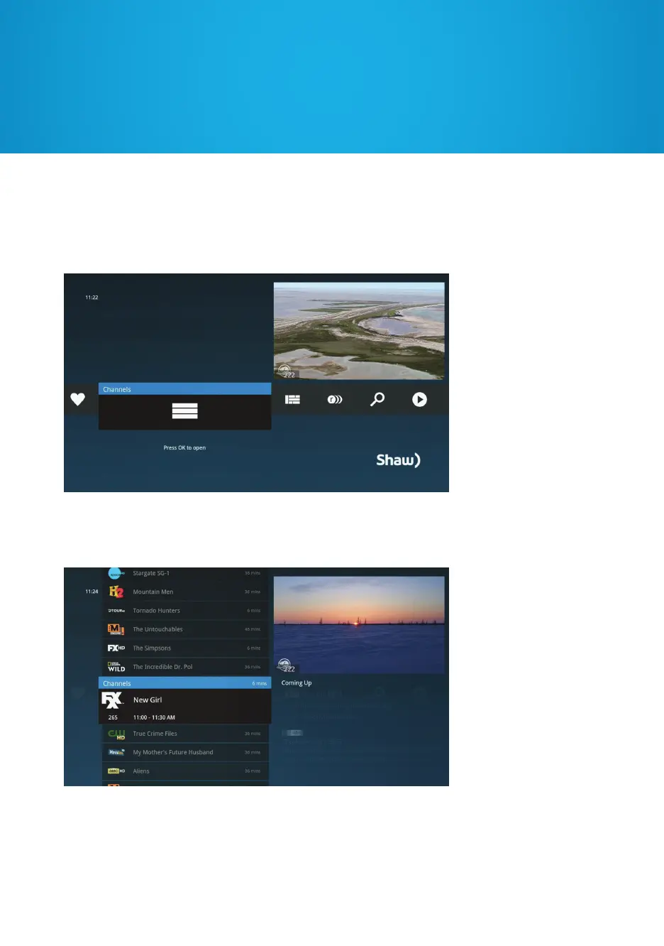 item at a time, or CH+/- to page through the list.