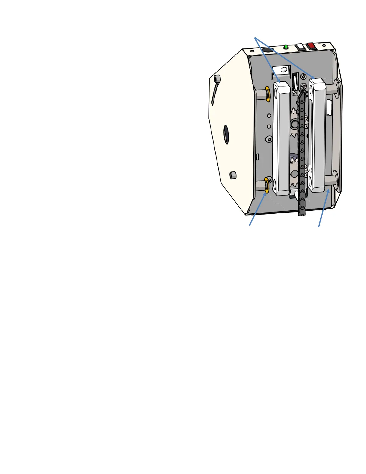 each axle on the gear rack side only.