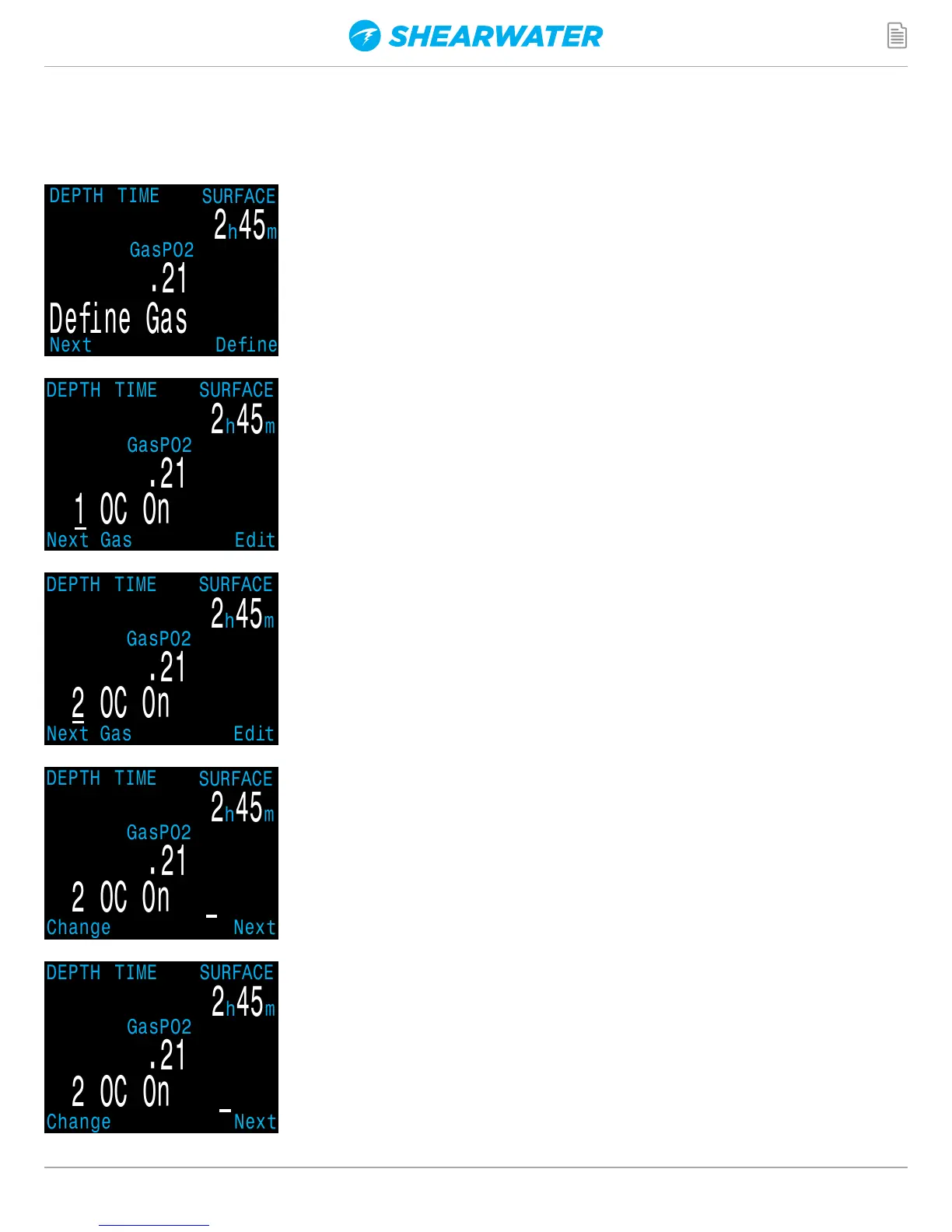 circuit diluents. For each gas, you can select the