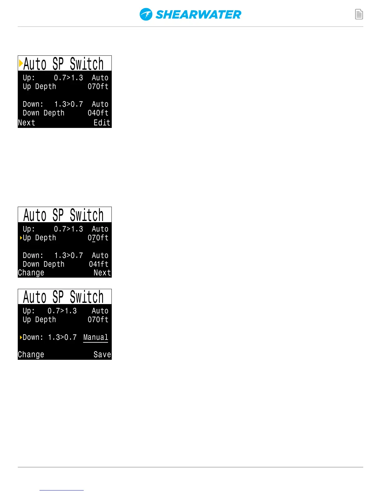 Up: 0.7 > 1.3 = Auto, Up Depth = 70 ft.