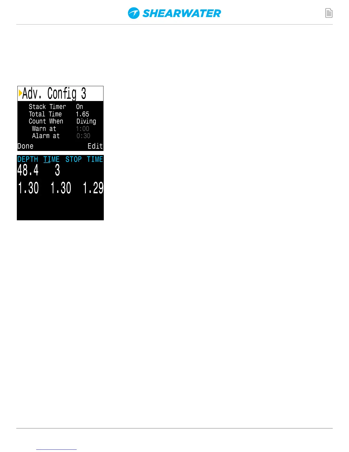 stack timer can be set to count down either when diving, or when