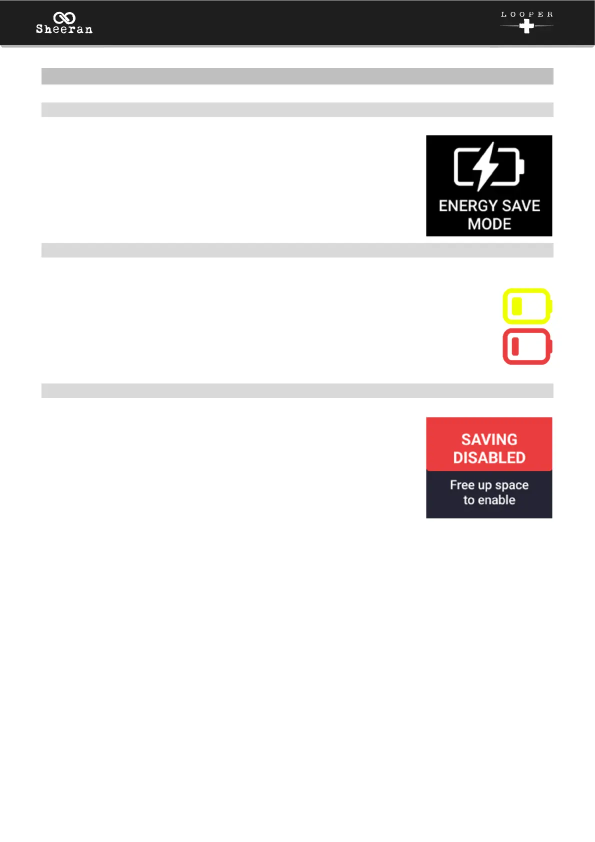 If you are operating Sheeran Looper + on battery power, after two minutes