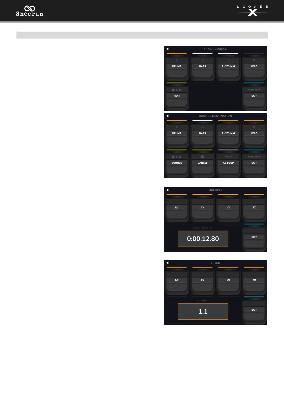 On the next Bounce page, use the Track 1–4 pedals to select