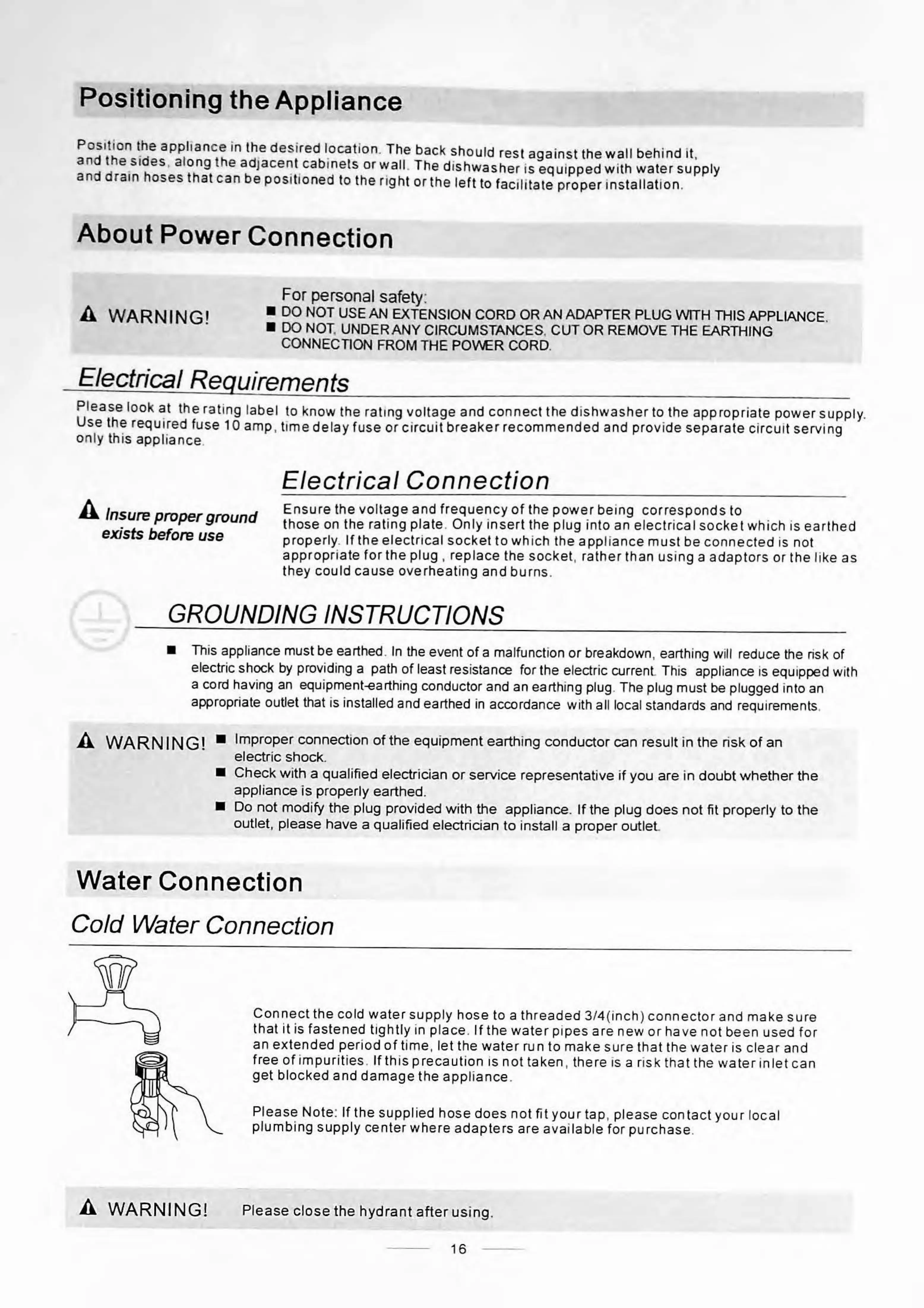 Cold Water Connection