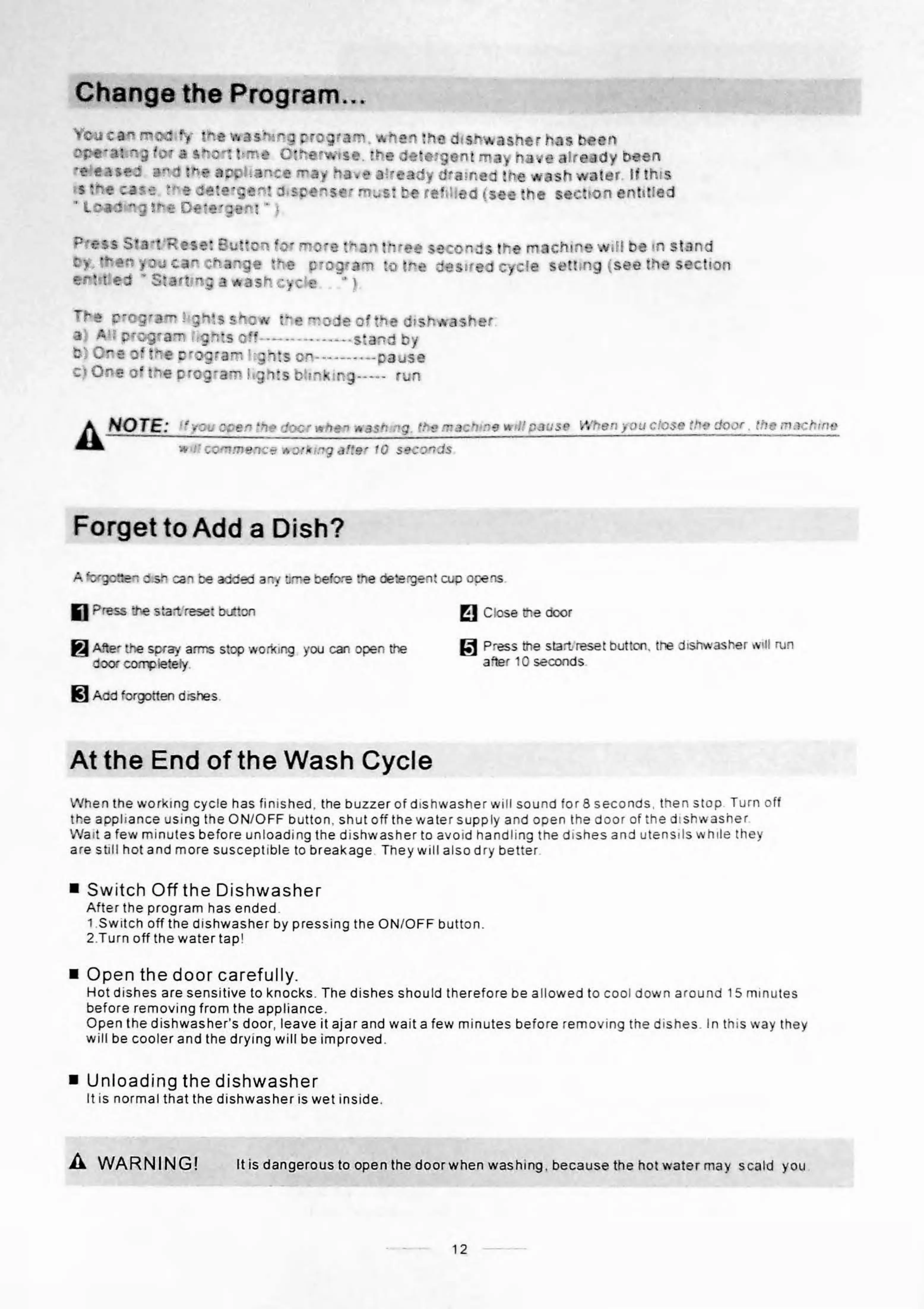 Sheffield PLA0963W - Program Modification and Adding Dishes; End of Wash Cycle Procedures