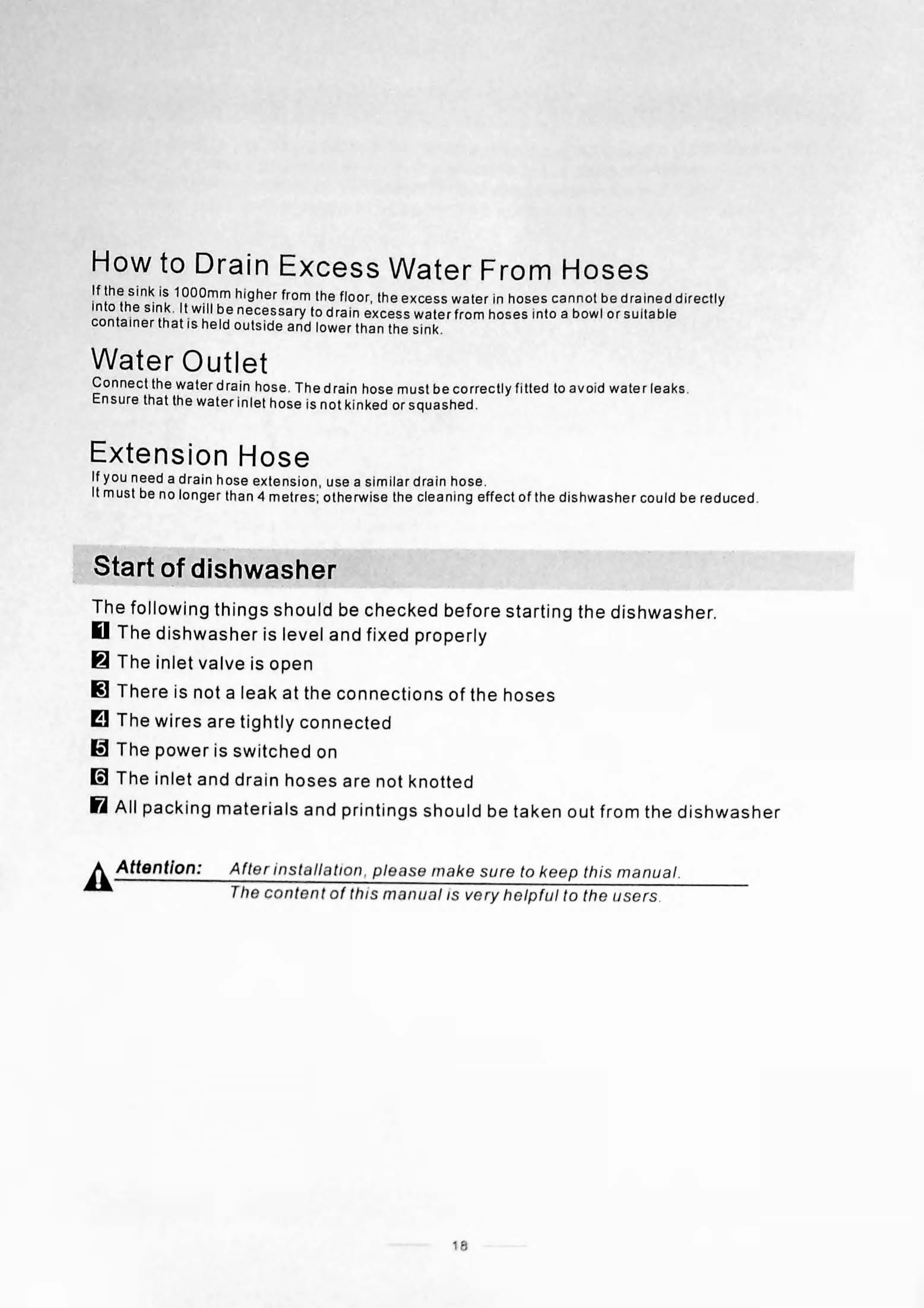 from the floor, the excess water in hoses cannot