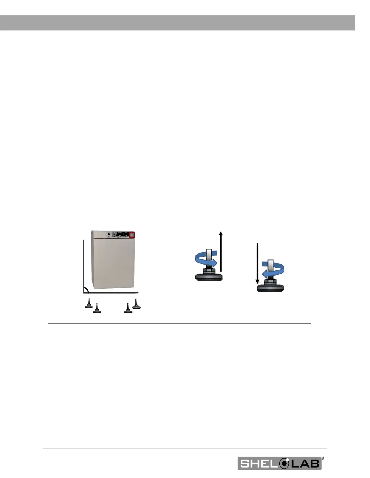 Install the leveling feet in the 4 corner holes on the bottom of the unit. The unit must be level and