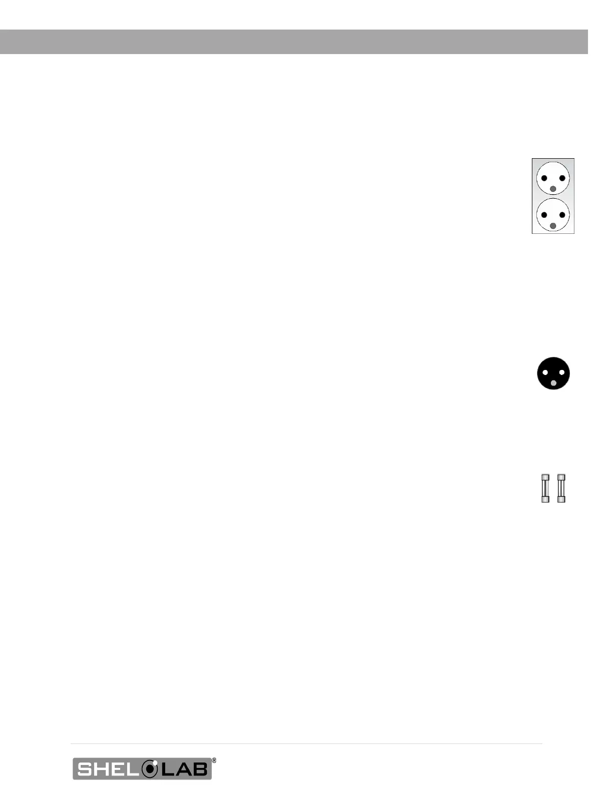 Fuses: The unit ships with a fuse installed in the power cord inlet and a second fuse installed in an