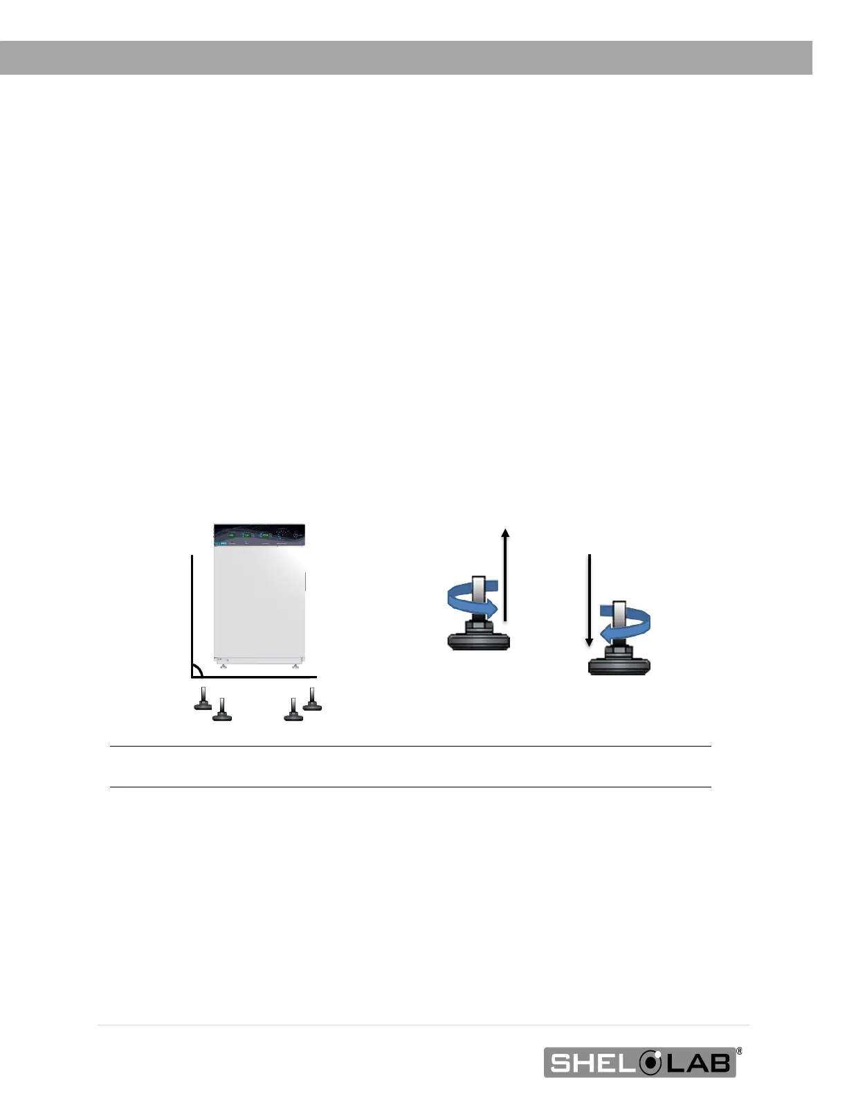 Install the leveling feet in the 4 corner holes on the bottom of the unit. The unit must be level and