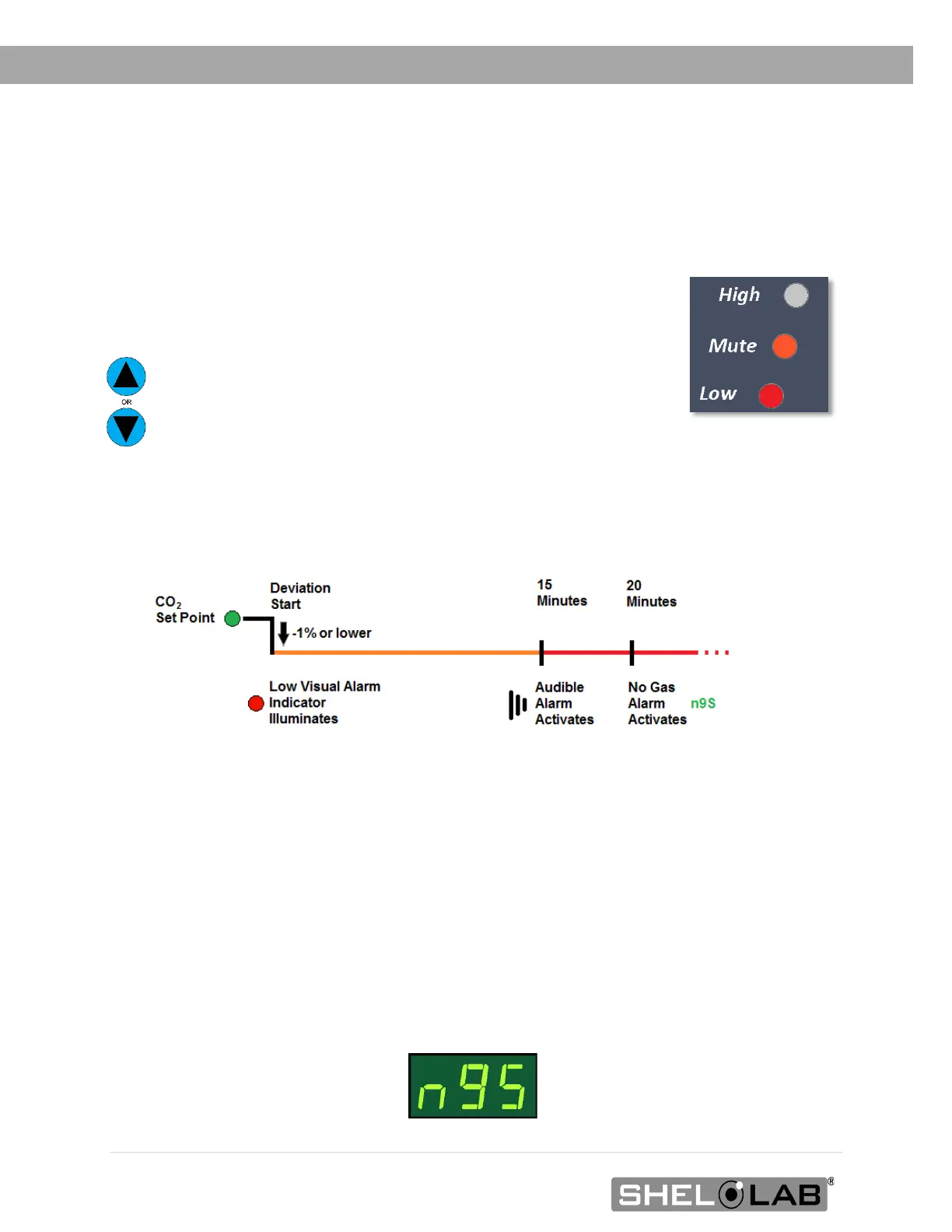 Audible and visual deviation alarms activate if the incubation chamber CO