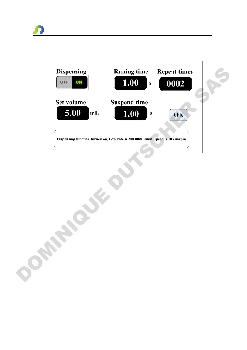 After turn on this function, the pump will enter dispensing mode.