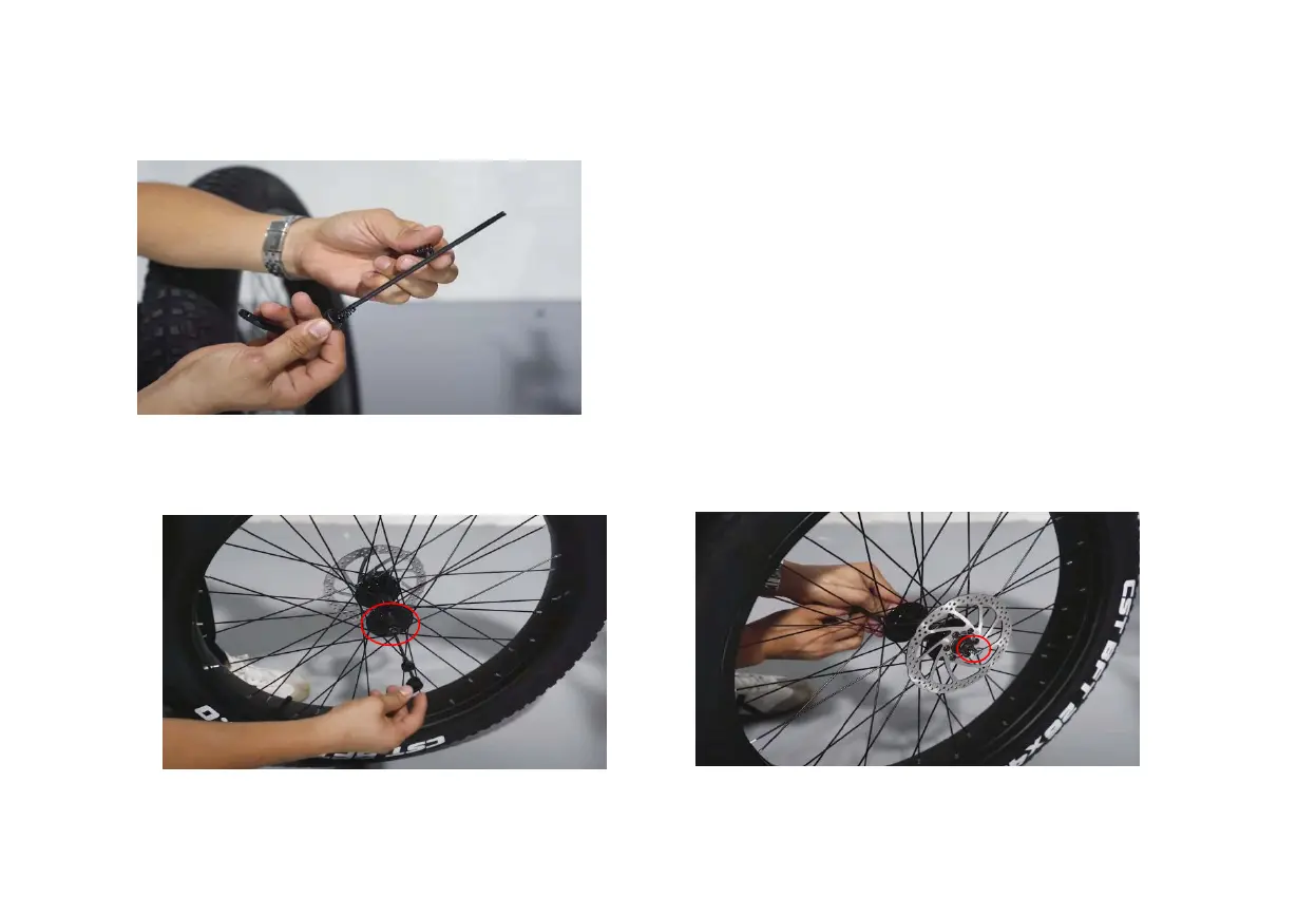 Step 2: Install the quick-release skewer starting from the brake rotor side of the wheel, inserting the quick-release skewer through the hub and then