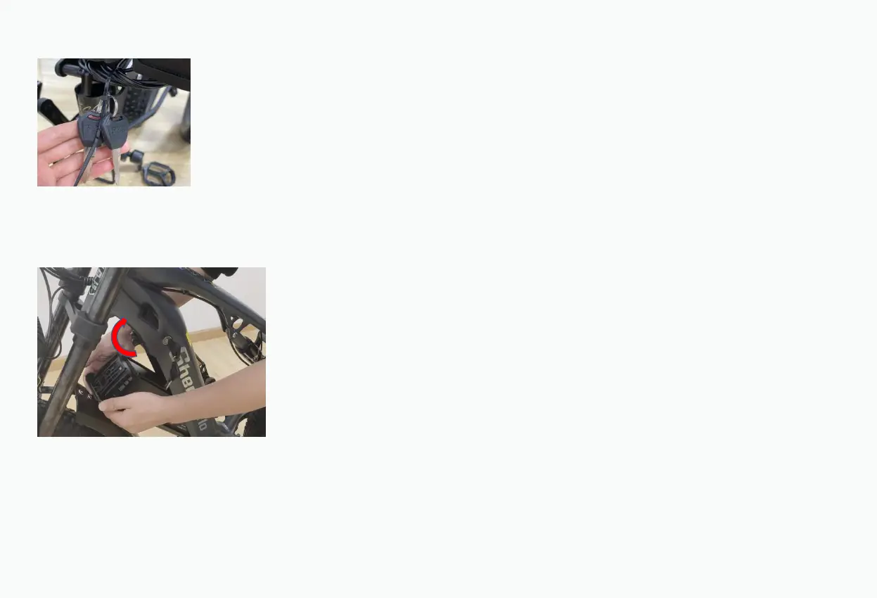 Step 2 : Use the key to unlock the battery. While holding the battery with one hand, detach the battery by turning the release switch located