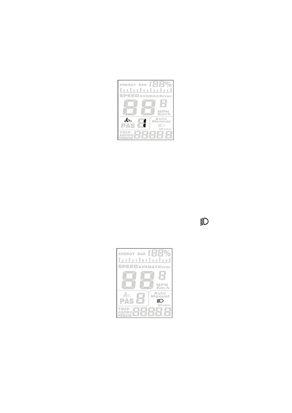 display, it will light up. Press the [UP] button again for 2 s to turn off the headlights.