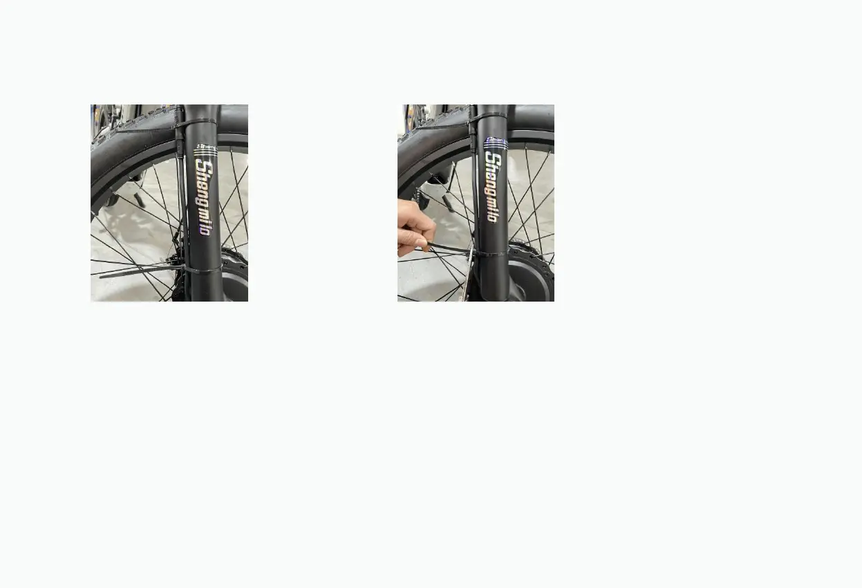 Step 5 : After connecting the front wheel motor cable, use a cable tie to secure the cable to the front fork, and use scissors to shorten the