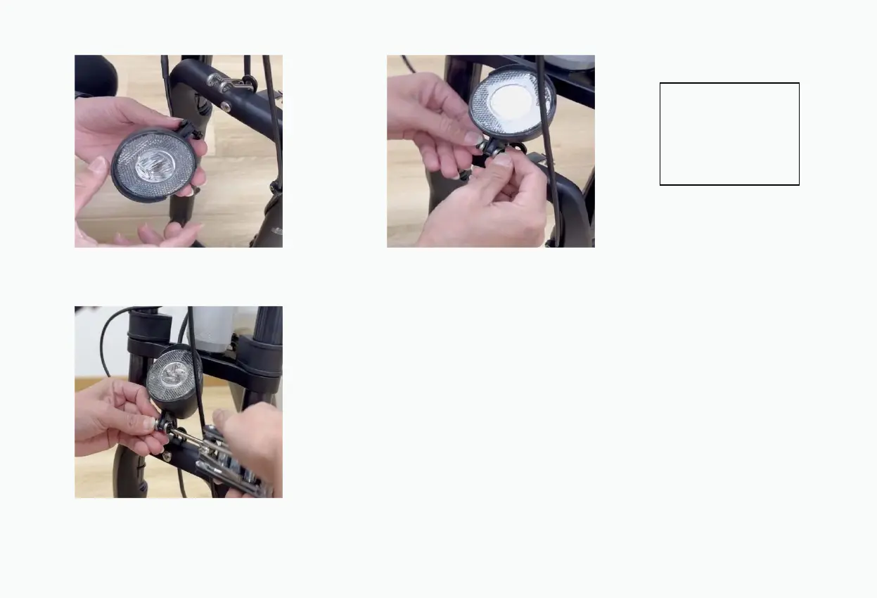 1. Loosen the bolts on the headlights with a PH1 wrench 2. Align the headlight bolt holes with the holes on the fork bracket